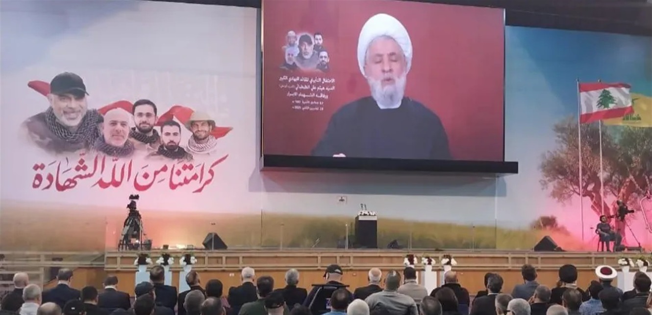 وتحدّث قاسم عن الوضع بعد مرور عام على اتفاق وقف إطلاق النار، فجدّد القول بأنه «يوم انتصار للمقاومة وللناس وللبنان لأننا منعنا العدو من تحقيق أهدافه بالقضاء على المقاومة»، معتبراً أن ما بعده هو «مرحلة جديدة تحمّلت فيها الدولة اللبنانية مسؤولية أن تُخرِج إسرائيل وأن تنشر الجيش جنوب نهر الليطاني، وعلى الدولة مواجهة العدوان المستمر، سواء على رئيس الجمهورية لأنه يتصرّف بحكمة وعلى الجيش وقيادته لأنهما يقومان بإجراءات لحفظ الأمن الداخلي ومحاولة تحرير الأرض، وعلى الاقتصاد من خلال العقوبات الأميركية وقولهم، إنهم سيطاردون القدرة الاجتماعية والثقافية لفئة من اللبنانيين».